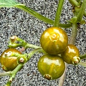 誰が磨いてくれた訳でもないのにツヤツヤピカピカのヘクソカズラの実✨ 塀を乗り越えて自慢げに見せてくれてるのかな…❓