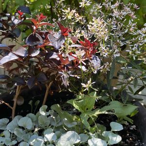 ユーフォルビア ピンクフロスト 植え付けから約1ヶ月後、だいぶそれらしくなりました。かわいいですね〜😍 銅葉とピンクのお花の組み合わせがホントにおしゃれ👍