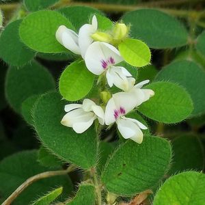 ネコハギ(猫萩) マメ科ハギ属 毛の多い丸い小葉を並べて☘️ 60cmほどの蔓を伸ばして地を這います 花は花柄が短く葉腋に集まって付きます 閉鎖花が多いですが 日当たりの良い場所では開花し 白い旗弁に紅紫色の斑紋があります💓😊🎶 全体に軟毛が多いのがネコの名の由来です🐈 分布: 本州から九州 中国、朝鮮半島 花期: 7〜9月