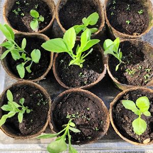 サカタのタネさんにいただいたアスター あずみXL®︎ モニター記録📝 みどりのまとめにはちょくちょく載せよるけど、こっちにも📸 やっとこさジフィーポットをプランターに植えました🌱 ジフィーポットのまま植えていいらしいけんそのまま植えたけどどうなるんだろ🤔💭