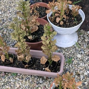 サカタのタネさんのモニターで育てているアスター😍 陽当たりが良くて葉が枯れてきました😭 まーの家は夏の陽射しが強くてはが焼けるのが多いです😱 西陽が当たらない位置に移動させましたが、もう手遅れでしょうか? 過去に畑で20株植えて花を見たのは一株だけなので、アスターの栽培は難しいと思ってます😨