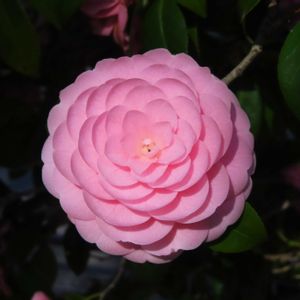 とても綺麗なピンクの「ツバキ」に出会えました。 パチリ