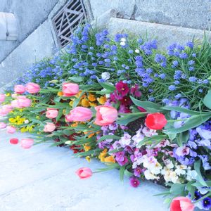 「チューリップ」「ムスカリ」「ビオラ」の混植 とても綺麗。 パチリ