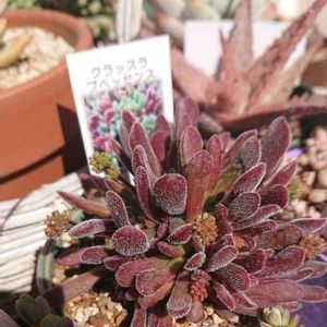 ブベッセンス。 プベスケンスって名前で投稿されてる方が多いようですが、 買った時のタグはブベッセンスでしたので、それでいきます。 多肉植物はそんなのが多すぎて困りますね😓 紅葉が更に進み濃い紫色に😊 小さい花も咲き始めました。 少しずつ増えてます。