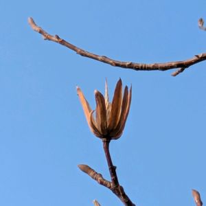 オハこんにちは(*^^*) いいお天気になりました☀ 青空にティアラ♛が映えるわ〜♬ ・・・見てると、書道みたいにも見えちゃうの🤣 右から払うように左へ筆先をシュッ!! その勢いでトンッと置いて、 真ん中辺りからスッと下ろして左に跳ねる❗ ・・・何の字だーーー!!(笑)(笑)(笑) やっぱり、#GSオモロ倶楽部 作ろうっと🤣 こちらは、ユリノキの果実軸(下記参照)です。 2つ前の、これはなんでしょうのPICは、 ツワブキで、綿毛がみんな飛んでいった跡の様子です〜♬ 【ユリノキ】 モクレン科ユリノキ属 北米東部原産 花期は5〜6月。枝先に碗状の花が上向きに咲く。花被片は9枚。外側の3枚は緑白色の萼片状で反曲し、内側の6枚は花弁状で直立して碗状になる。この様子がチューリップやユリに似ている。 花弁の色は黄緑色を帯び、基部にオレンジ色の斑紋がある。 果実は松かさ状の集合果。モクレン科としては珍しく果実は裂開せず、種子を含んだままそれぞれが回転しながら落下して風散布される。その為、晩秋からは、その最外輪の果実だけが残ってコップ状になることが多い。