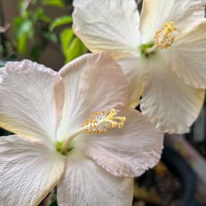 【ハイビスカス🌺】 室内で何度も咲いてくれてます😍 この淡くて優しい色が癒されますが、ソロソロ外に出そうかな❓️