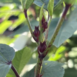 ローゼル初蕾🌺 カリカリ梅風を作りたいから花が咲いて実がなるのを待ってたけど 畑では玉ねぎの準備しないといけないのよ 収穫まで待ってる時間がないのよ なんでこんなに遅いのよ とりあえず周りから耕して準備始めるから なる早で実をつけてね🙏