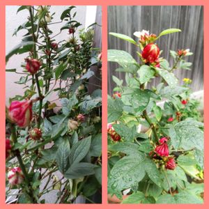 もうすぐ雨が降りそうです🌧️ 今年最後になりそうなモミジアオイ🌺 ②〜⑤ローゼルもお花が咲かなくなってきました クリーム色だった花びらが少しピンクがかかって可愛い💕 雨の前に収穫して種を抜きベランダに干しました❣️ 🏷️真っ赤な火曜日