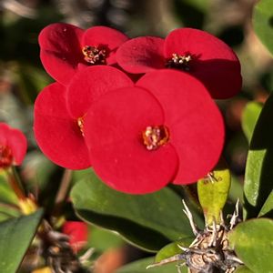 ずっと放置なのに年中咲いてくれるゼラニウム❤️ ②2年ぶりに咲いてくれたマウントオービスク❤️ ③今年最後のハイビスカスローゼルの実❤️ ④ご近所の可愛いアブチロン❤️ 🏷️真っ赤な火曜日参加します