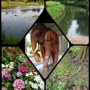 ↖️公園の池 ↗️公園横・見沼代用水東緑 ⬅️さぎ山記念館前・ナウマン象 彫刻 ↙️🌼ペンタス🌼 ↘️公園で見かけた気根。 「 気根」 見てみたいなぁと思ってまし たが😊 これも気根っていいますか。 🤔