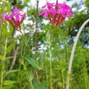 🌼ムシトリナデシコ🌼NO2 今日も会えたので 茎に注目してみました。 葉の下に黄色い帯があって 触るとネチャネチャしてた!! ここに小さな虫が捕まるのね😁