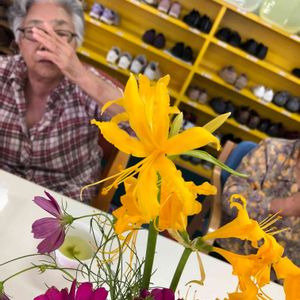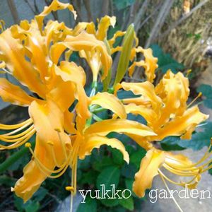 実家のお花其の2 パッと目を惹く🌼 名前は分からないらしいけど、美しい✨ ゆりの仲間かな? ※ちゅっぴさんからのヒントを頂き調べたところ、ヒガンバナ属のショウキズイセンだと分かりました❤️ ちゅっぴさん、ありがとう😊