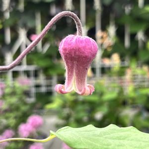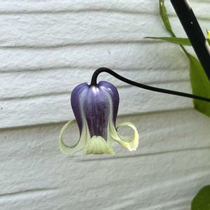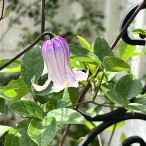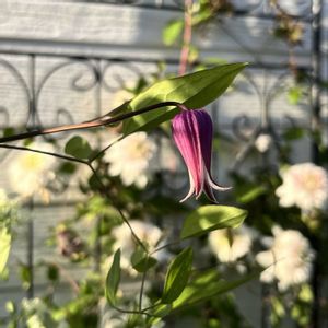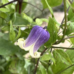 クレマチス 会津の風 ロウグチと同じアーチに絡ませていて、ロウグチと似た紫系なので開花に気付かずでした💦😅 知らない間に何個も咲いていて見逃してしまいました💧 こんなにかわいいのにもったいないことしました😭