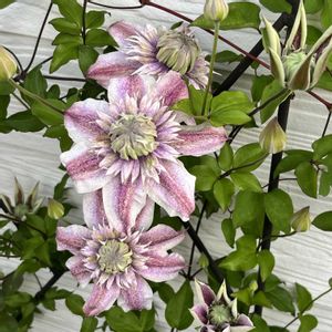 毎日暑い中クレマチスが元気に咲いてくれてます🎵 先月壺型たちがうどん粉病になったので全員カット✂️ 今度は枝が伸びるのも早くてキレイな葉っぱで復活して次々と咲いてくれている薄桜です😊