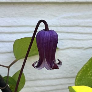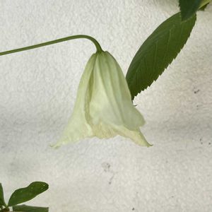 クレマチス ボーゲルビーホワイト 傘のような形の白いかわいいクレマチス🤍 とってもかわいいお花なのに白い壁のところに植えたため同化してしまい咲いていることに全く気付かず💧 もっとこの子の良さが生きる所を考えてあげないと😅