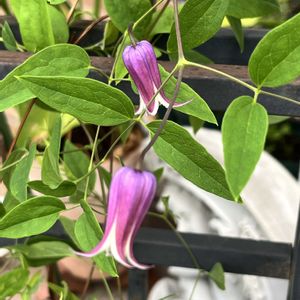 暑い中頑張って咲いてくれているのは壺型クレマチスさん達😊 篭口は春よりも今のほうが爆咲き中です🎵