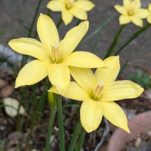 タマスダレと言えば、白花ですが、黄色の花も可愛いです。 発芽するかどうか、半信半疑で庭に種をまいたものから育っています。 白花は気づかなかっただけか、種ができた記憶がありません。