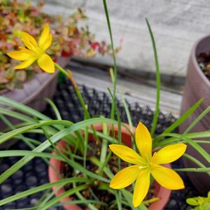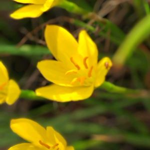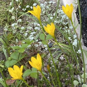こんにちは 朝の散歩で出会ったお花です キバナサフランモドキ(1.2枚目) キバナタマスダレ (3枚目) ・・でしょうか? 蕊の部分の違いで判断しましたが⁉️