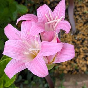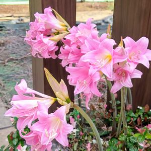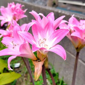 散歩道で出会ったピンクの花 ナツズイセンかな?と思ってた。 Google🔍️はベラドンナリリーと。 似てるけど、ベラドンナリリーかな。 間違ってたら、教えてください。