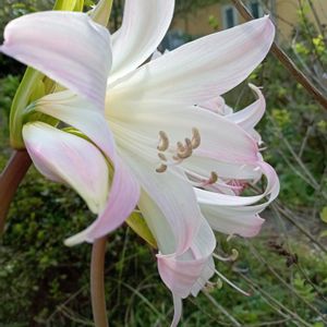 先日ネリネだと思って投稿した蕾、咲いたらベラドンナリリーだった😳 アレ?じゃあネリネは何処だったかと、植木鉢を探している状況です😱