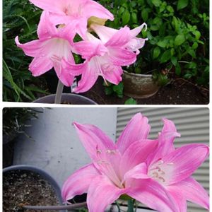 前にどなたか投稿していたと思うのですが… 実家にあるとは知らず💦 葉っぱは、後から出てくると母は言ってます 名前を教えてください お花が咲いている時に 葉っぱが無いことから、ベラドンナリリーと思われます。 みーさん、navyさん、チコさん、ありがとうございました😊