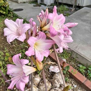 ベラドンナリリーでしょうか。 ピンク色の芳香のある花が沢山花を咲かせていました💕