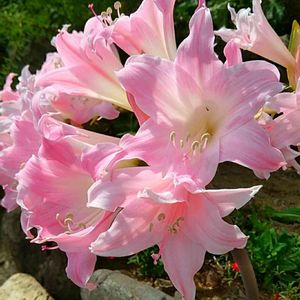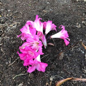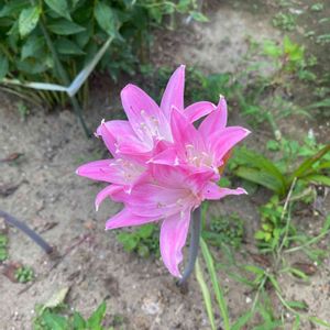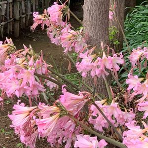 🌸ベラドンナリリー🌸 養護老人ホームの花壇で。友人の母上が入所されています。 8/22(日)の蕾 立派な大きさで、どんな花が咲くのか楽しみでした。 8/25(水)全開のゴージャスなピンク色の大房です。 🏷ピンクワールドへようこそ に参加させていただきます。 別名: ホンアマリリス(本アマリリス) アマリリスベラドンナ ネイキッドレディー ヒガンバナ科 ホンアマリリス属 原産地: 南アフリカ 一般に言うアマリリス(ヒッペアストルム属)の多くの種が花期も葉を展開させるのに対し、本アマリリスはヒガンバナのように地上部に葉がありません。 花言葉: 「沈黙」「ありのままの私を見て」