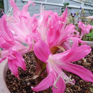 ピンクワールドへようこそ~💕😍前出の、アマリリス・ベラドンナ「夏桜」です😊濃いピンクが特徴で、香りもあるんですよー🎵夏桜という名前ですが、そろそろ夏も終わりかなーという時期に咲くので、夏の終わりを告げる花というイメージですね~😃