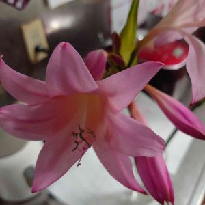 ピンクワールドへようこそ~💕😍前出のアマリリス・ベラドンナ「夏桜」横から見るとこんな感じです~🎵まだ咲き始めなのでつぼみ加減で百合みたいですねー😊