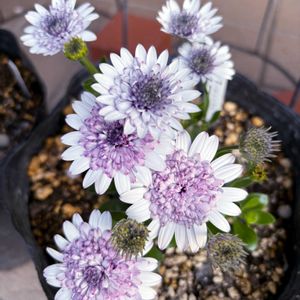オステオスペルマム フォーチュンブルー 春に沢山咲いた株が、涼しくなって又咲き始めました😍 涼やかな色あいが好き🥰 肥料をあげて、植え替えしたらもっと沢山咲いてくれるかな😍⁉️