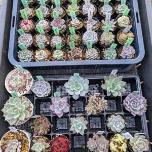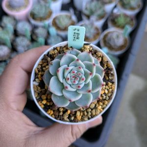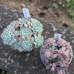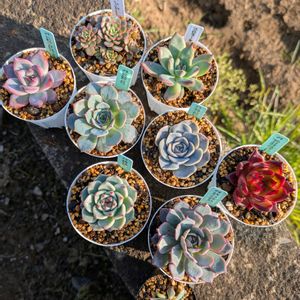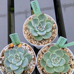 はぴたにさん苗🪴 instaで見て絶対にお迎えしたかった中央左の スプワン×アメチスチヌム やっとお迎え出来ました🙌 はぴたにさんはオリジナル交配してて可愛い多肉さん沢山あり、気になる子がいればと言って頂き他の多肉さんもお迎えしました☺️