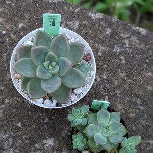 こんにちわ🙌 今日は葉挿しの日、石の日〜🍀 葉挿しが苦手で💦 唯一のエケさんの葉挿しちゃんたち🍀 お気に入りのはぴたにさんのおらいさん交配苗🍀 親株さんと一緒に観察中🧐✨ ↗昨日もpicだるま姫秀麗×ちょこん🍀 はぴたにさんが「当たり苗で子株出るよ」って言われてましたが葉挿しから40日10個中9個芽が出てました🙌✨ 昨日は埋もれてて気づきませんでした🤣 楽しみすぎる🤭💕 ↙KOHさんのfollowさん苗の葉挿しちゃん、おもちです💕 ちいちゃい時から白くて可愛い💕 ↘だるスプちゃんもアップに✨ 葉挿しから2ヶ月です✨ オジゾータンとイシコロタンが見守ってます💕 今日は2pic目に続く✨ 複数投稿苦手で💦