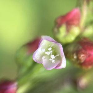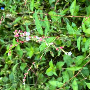 ボントクタデ(ぼんとく蓼) タデ科 イヌタデ属 名前の由来 ヤナギタデに似ているが、辛味がなく役に立たない愚か者という意味 ボントク🟰愚か者 本州〜沖縄の水辺に生える一年草 花期は9〜10月 花はまばらにつき、花穂の先は垂れる 花被は緑色で先端は紅色 赤い花穂の所々に4mmの薄紅色の花が開く 葉にはV字の黒斑がある 葉を噛んでみましたが辛くないので、こちらはボントクタデ 去年近くにヤナギタデが生えていたのですが、まだ見つかりません ヤナギタデの葉はピリッと辛いです