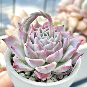 多肉植物園ナイト営業中✩.*˚ 下葉が2枚だけ長いのがあったけどキレイに整って来たので、下葉を取りました。