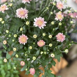 ベルギーマム 去年1箱300円の見切り品箱の中にあった一つ 今年はたくさんの蕾が出てきて もうすぐ咲いてくれます💛💛