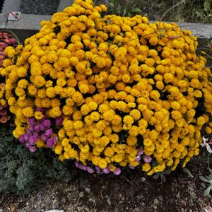 ガーデンマムジジ 5年目 3色がほぼ黄色😅 2枚目 ベルギーマム 4年目 年々大きくなるけれどまぁるく剪定するのが難しい😓