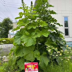 オルトランまいて1か月がたちました❗️虫喰い0❗️こんなに大きくタチアオイがツヤツヤの青々おした葉っぱで元気に大きく育ちました❗️追加で少しオルトランまきました❗️