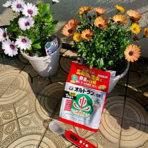 10:30 ☀️ 外気温20℃ GFオルトラン粒剤1Kg(袋入)のモニター報告です おとといの前の日に菊(クリサンセラム)から、小さな芋虫みたいな毛がない毛虫みたいなものを駆除したので、これ幸い使用します 【きく】1番上だわ、さすが 使用量6g/㎡…ん? 算数の弱い私 多分1m四方内カナ? 菊の鉢は確か7号だから6gじゃ多いよね でも、こないだお出ましになったからまきたい えーいと6g株元にまいて、水やりをしました さーっと溶けていきました 5️⃣枚目元気のないポインセチアを室内なのに虫のせいにして、オルトランパララ〜♪ ん?1️⃣枚目の上から8番目にポインセチアを除くって書いてある〜😱 即スプーンで取り除いたのでした💦 今朝8時頃の話です〜𖤣𖥧𖥣。