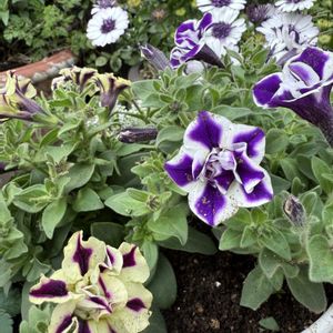 ペチュニアピスタチオパフェ、白い花が開くとパープルの柄が見えてきて可愛いです(*^^*)