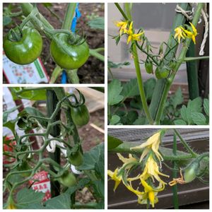 結実が始まったトマトたちも昨日今日の強風にも耐えることができた。 他の品種も開花してきてるので楽しみです。