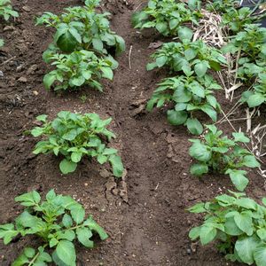 じゃがいもの芽もほぼ出揃いました、 やはり30日かかりますね。 少ししたら芽欠き、追肥、土寄せを行います。