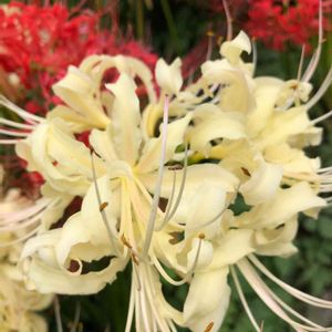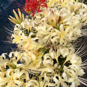 近所を散歩していたら、白いリコリス(彼岸花)が綺麗に咲いていました。 駐車場脇でしたが、どなたかが手入れしているようでアルストロメリアも葉だけですが生き生きしてます(*´∀`*) やっぱりお花って、心を癒やしてくれますよねぇ。