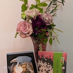 10日、11日サプライズが😱🤩😍🥹🥹 No1…🌹母の日🎁 同じフロアーのよっちゃんが、一昨日 🌹🥀🌿、美顔器 初摘み新茶、クッキー 😱🤩〜4歳年下の気遣いの出来る妹見たい よっちゃんは私のお母さん見たい〜 まぁ〜妹、娘でもどっちでもいいや😄 素敵で大切な妹💞🥰 カリステモン 姫リョウブ カーネーションバビロン 紫バラ グリーンバラ No2…昨日上の階の小6年生、小3年生の のぶちゃん、妙ちゃんが、ばぁーばありがとう〜🥰💞🌹🥀🌿子供がいない私達には可愛い〜孫2人です☺️ 31日は小学校の運動会なのでじぃーじと、 ばぁーば応援🤳🏻 No3…昨日お昼に🐈プチがベランダから ワンワン…おばちゃんいる〜 🧑🏻…プチおいで〜 まるで🐆チーターの様な速さで吹っ飛んで来た😱 お蕎麦を喜んで食べる事、プチママには🤫🤫 とても幸せな日でした 🥰💞🎶 樹里🤗