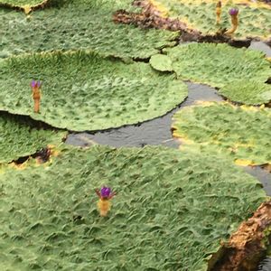 散歩コースの池に、咲きました。 オニバスです。 葉の下から蕾が突き破り、 紫の花をさかせます。 自然の力強さを感じますね。🐝