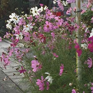 塀の横の僅かなスペースで、 倒れずしっかり咲いています。🐝 種子ができるまで頑張れ❣️