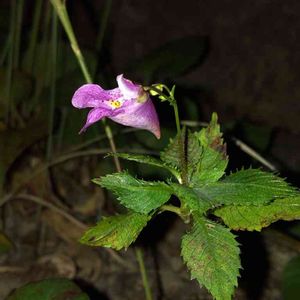 ツリフネソウ(釣船草) 別名:ムラサキツリフネ(紫釣船) 6〜7月にキツリフネソウ(黄釣船草)を見ていて、ムラサキはないなぁ〜 でしたが、花期が夏から秋(山地では 8月頃から、低地では 9-10月)でした。 行きつけの緩山にて