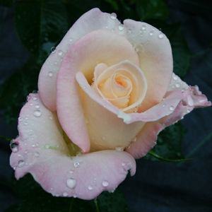 トゥルーラブ🌹雨の中開花し始めました🙌☔💕 トゥルーラブは真っ白な薔薇だと思っていましたが花弁の端がほんのりピンク色に😌🌸 これもまた可愛らしいです🎵