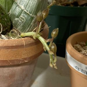 ① ② 開花中の2株です ③ clowesia white magic (3兄弟) バラバラになったバルブの先っぽに新芽🌱を出してくれたのに 私の不注意で取れてしまいました。 以前 カタセタムくんから バルブと一緒に植えてやると良いですよ。とアドバイスをいただいていたので 予定より早くなった植え替えです ④ 根っこが暴れてる💦 ⑤ これはこのままで大丈夫かな?