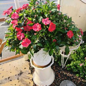 【八重咲きインパチェンス フィエスタ】 インパチェンスの八重咲き炎天下育成検証 pic2 7月の初旬に見切り品購入即ピンチ✂️ ここまでで 約2ヶ月炎天下育成してました。 【セットアップ】 ゴールデン培養土 パーライト ハイパワー苦土石灰 珪酸塩白土 元肥無しの無肥料育成 (約30日間) 追肥 8:8:8 追肥 腐植酸 朝夕 ケイ素水潅水 週2回 自家製アミノ酸(グルタミン酸)水溶液 サイヤぶる育成 苦土石灰水溶液 葉面散布 底面給水30型鉢 朝から3時半まで炎天下 スタートが夏に入ってなので インパチェンスとしては出遅れましたが まっ 常に部屋から見える場所で育成してたので2ヶ月で巨大化してくれてる方のでは無いかな…? 花芽分化が始まったのでサイズアップ⤴️は この位で これからは開花🪷させます。 さて台風🌀の為に避難させたのですが 関東は大丈夫みたいな感じですかね… 皆様のお花もご無事で有りますように…🤔
