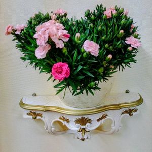 【カーネーション オスカー】 ダイアンサス ハンギング 昨年 冬越し時にチマチマと紐で誘引して ハートの形を作った ダイアンサス🩷 ダイアンサスって 枝がぐにゃぐにゃ➰➰➰🌿と捻れる習性があって カットでのデザイン剪定が出来ないと言うか どの方向に穂先が行くのかが読めないのよ なので お縄で あっち引っ張り こっち引っ張り 形が固定するのに4ヶ月位かかりましたね😅💦💦💦 やっとお縄が取れたw 5月に向けての開花中てとこ オスカーの特徴で 花弁色素が安定してないのよ 赤が咲いたり 半分赤 ピンクと もちろん1苗ですよ なので 咲色も読めないですね 【母の日のカーネーション咲かない理由】 (pic2) 電照処理 母の日のプレゼント💐のカーネーション💐は 電照により 母の日に向けて開花させてます。 💡💡💡 💡🪷💡 ✨✨✨ なので電照を長くして無理矢理開花させてるカーネーションは プレゼントされても 同じ時間の電照を与えないと 蕾が育ちません ⌛️💡🥀 なので プレゼントに頂いたカーネーションを通常のカーネーションにする必要があります。 花首の葉は 花を制御して光も記憶してるので 花と一緒にカット 更に蕾も同じくカット 蕾も電照により 光の時間が短くなると 花苞の成長も止まります。🚧😫💦 まっ ピンチした状態にすれば 次からの蕾は家の環境で咲くて感じですね 🏡🌹 平たく言うと 今までのメモリを カットして消去 これでオッケーです。👌😁 【枯れる理由】 厄介なのは ラッピング💐のまま飾るのもNG❌️で 蒸れて糸状菌😈が蔓延るのよ 根腐れですね 酸性土壌には 糸状菌 カビ うどん粉病…これらの住処ね 😈🙏👿🙏💀 根腐れは ほぼ酸性土壌ね アルカリ土壌に傾かせれば回避は可能だと思います。🧚✨️✨️✨️ 悪い菌類はアルカリ性を嫌うので まず住めないと言う感じ 全部が全部とは 言えませんが…高い高確率で住めないかな🤗